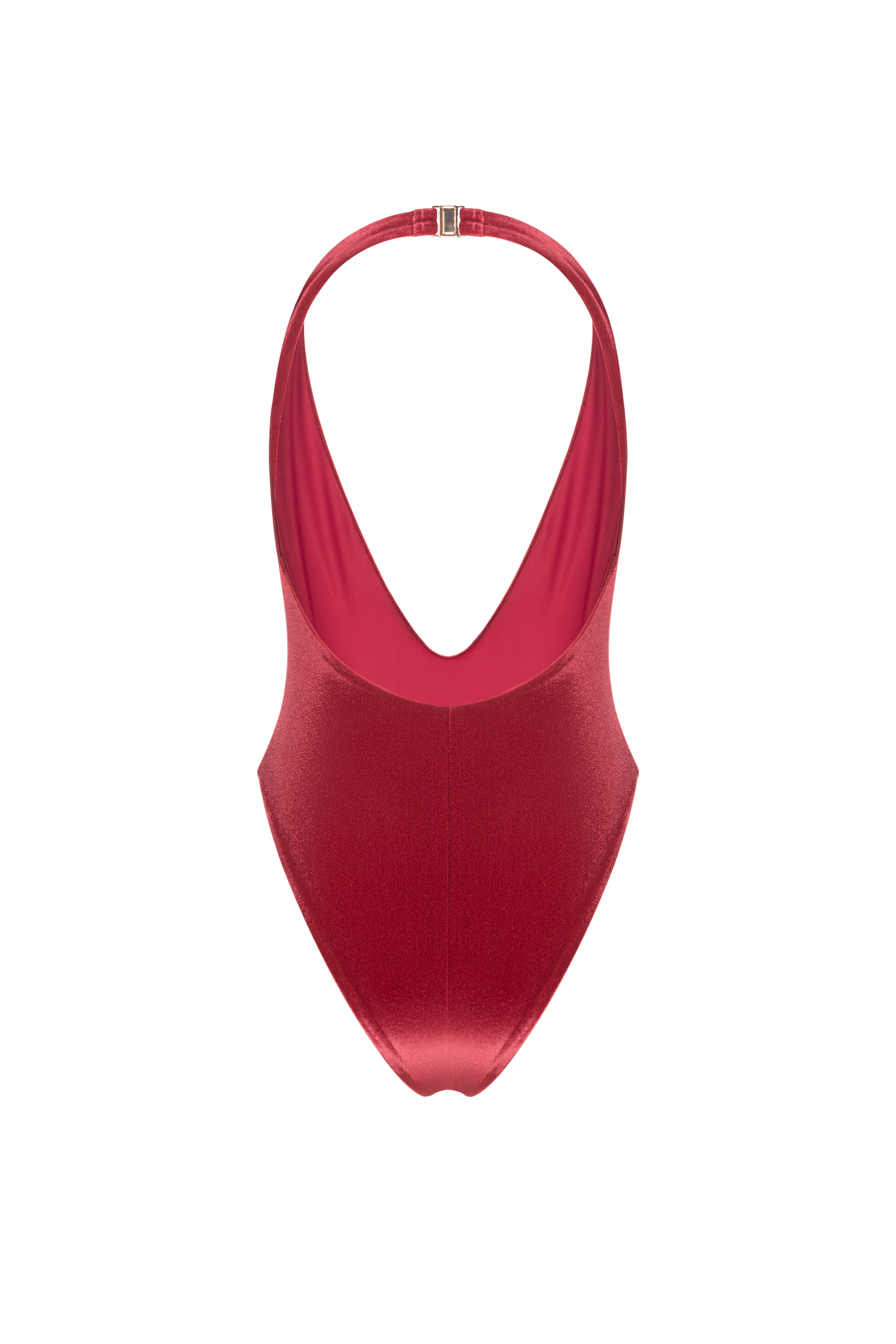 Купальник-боді з італійського оксамиту, створений як основа гардеробу. Чиста геометрія вирізу, відкрита спина, застібка на шиї із золотою фурнітурою.
