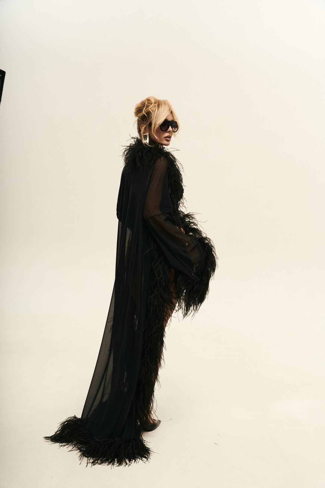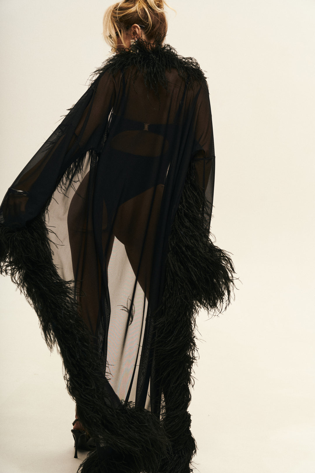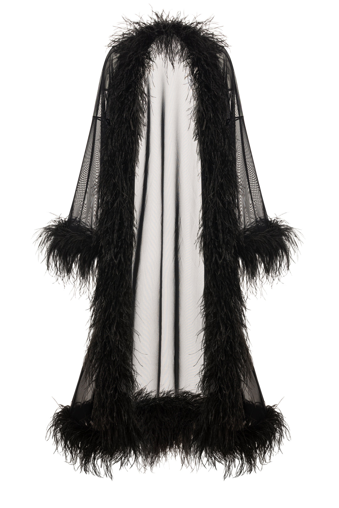 Kimono made of premium Italian mesh. Trimmed with natural English feather.