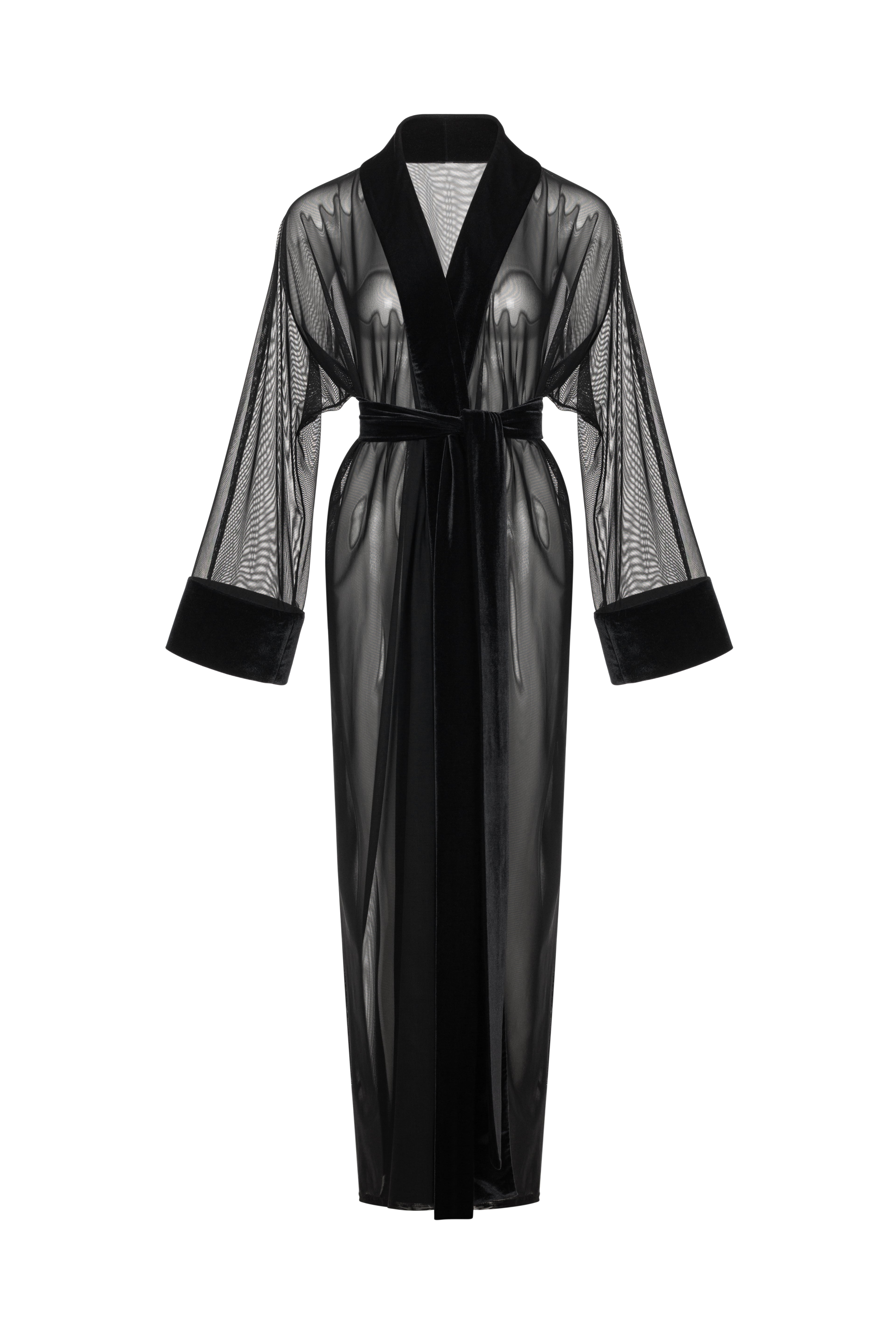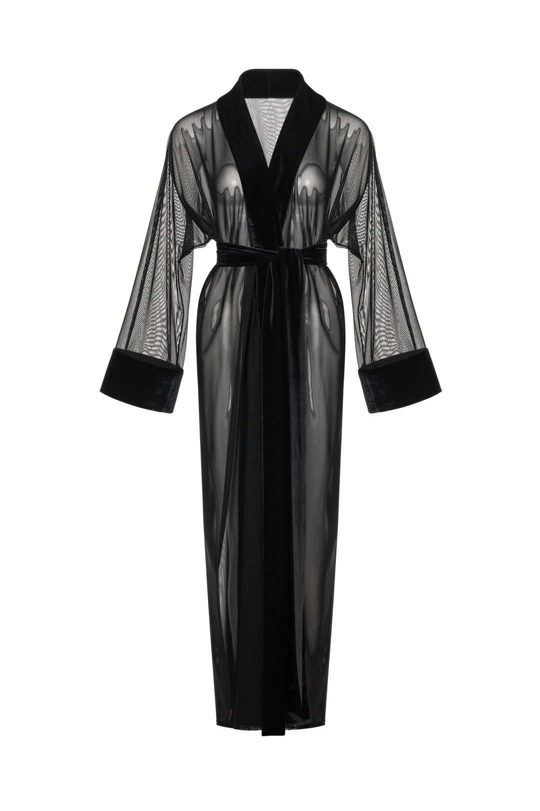 Kimono Nue is light, almost weightless, made of transparent mesh and trimmed with premium Italian velvet.